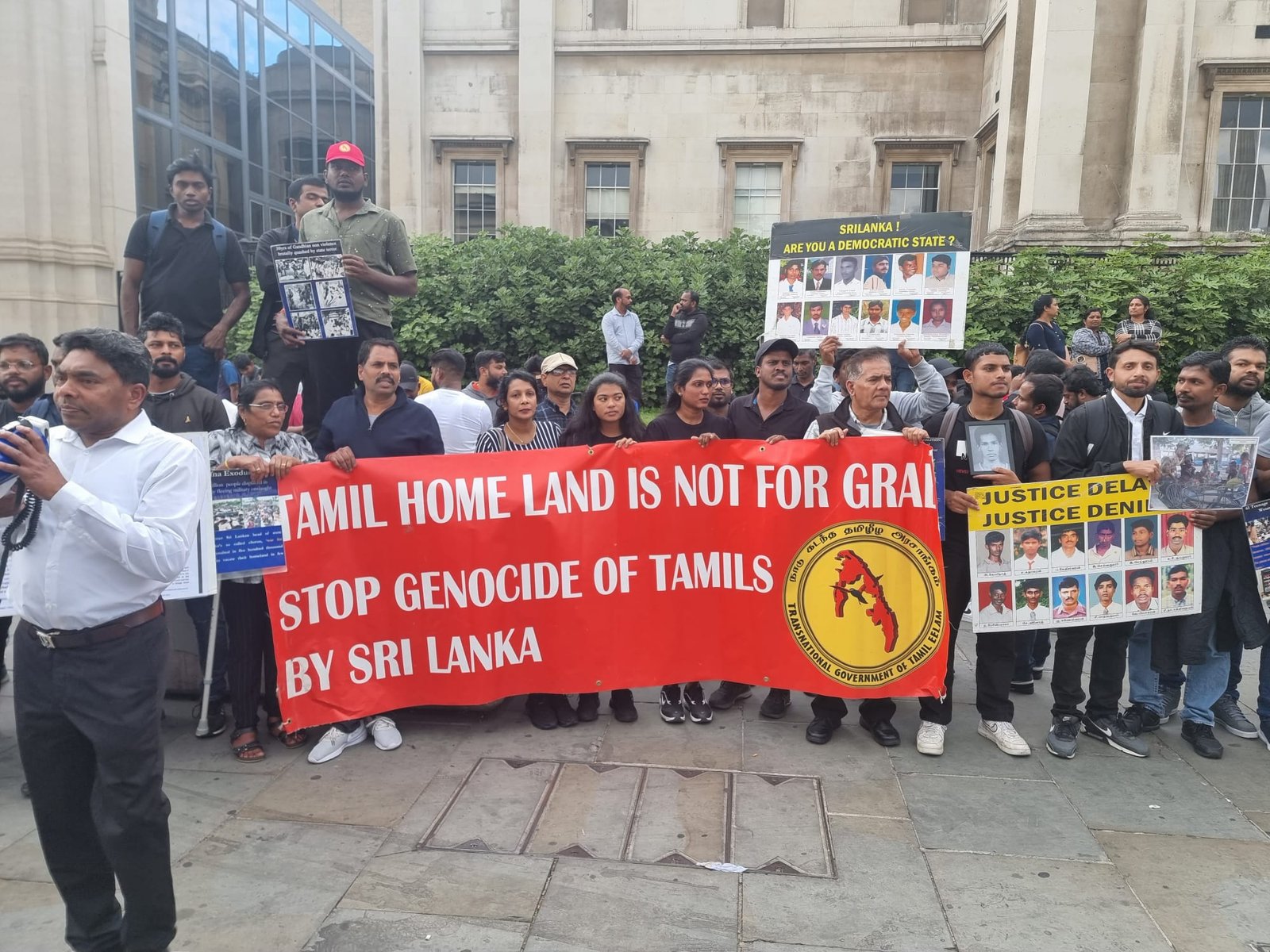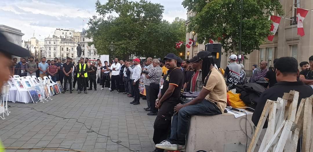 புலம்பெயர் தமிழ் அமைப்புக்கள் ஒன்றிணைந்து தாயகத்தில் வலிந்து காணாமல் ஆக்கப்பட்டோர் தொடர்பான நீதி கோரி 2000 நாட்களுக்கு மேலாக முன்னெடுக்கும் போராட்டத்துக்கு வலுசேர்க்கும் வகையில் இந்த போராட்டம் லண்டனிலும் ஒழுங்கு செய்யப்பட்டது. குறிப்பாக சர்வதேச காணாமல் ஆக்கப்பட்டோருக்கான தினமாக ஆவணி மாதம் 30ம் திகதி அறிவிக்கபட்டிருக்குறது. இந்த தினத்தில் தாயகத்தில் குறிப்பாக யாழ்ப்பாணம், முல்லைத்தீவு, கிளிநொச்சி, வவுனியா, மன்னார், திருகோணமலை மற்றும் அம்பாறை மாவட்டத்திலும் எழுச்சிகரமாக போராட்டங்கள் நடைபெற்றன.
