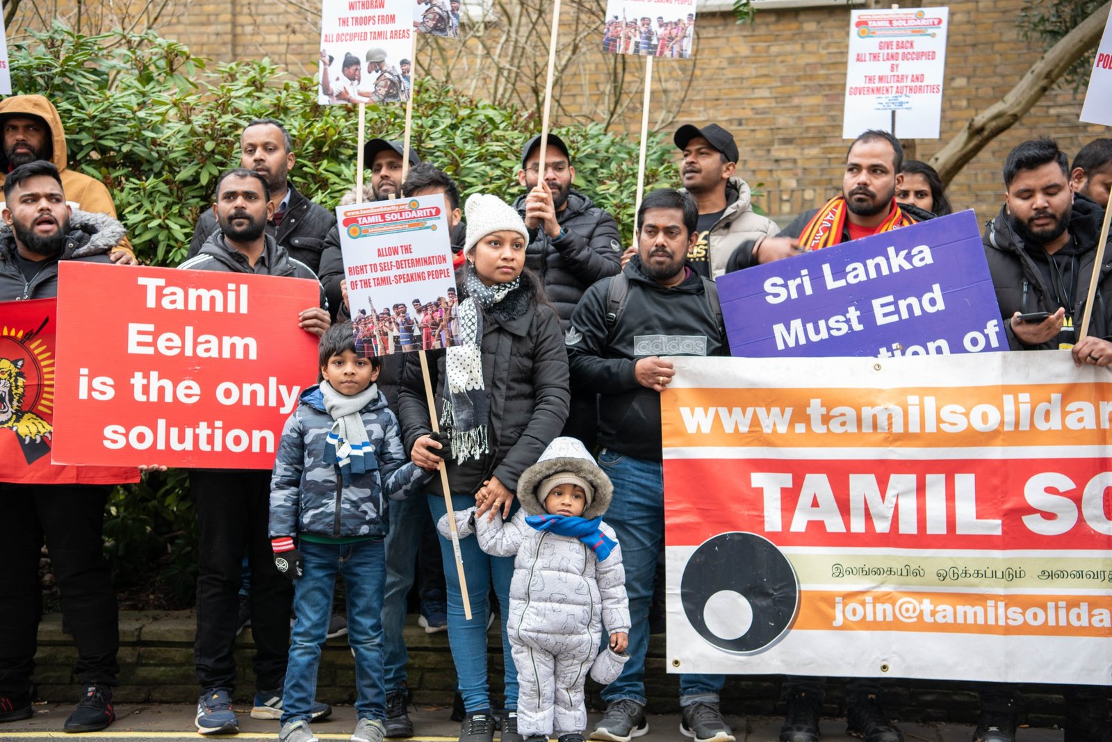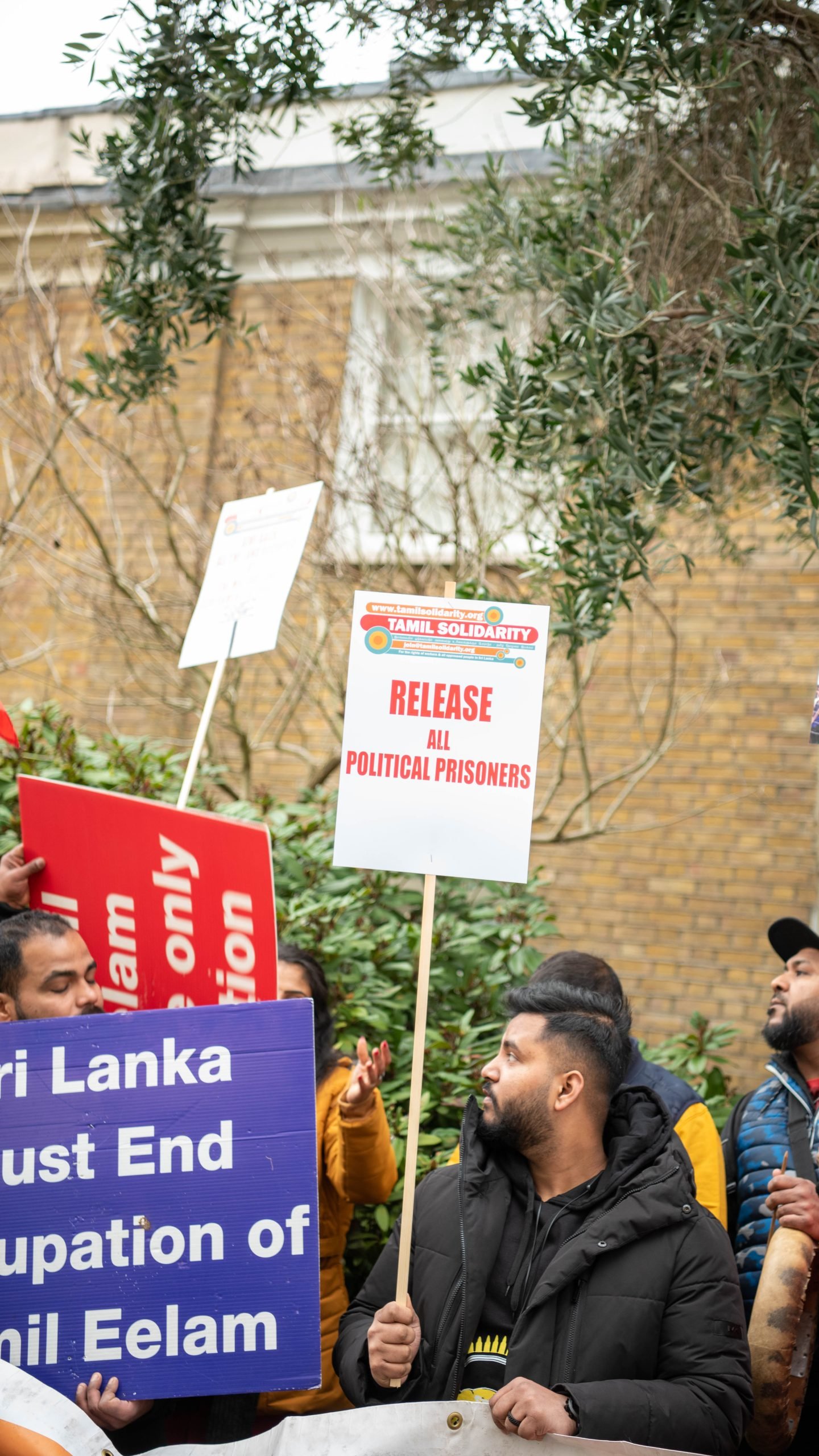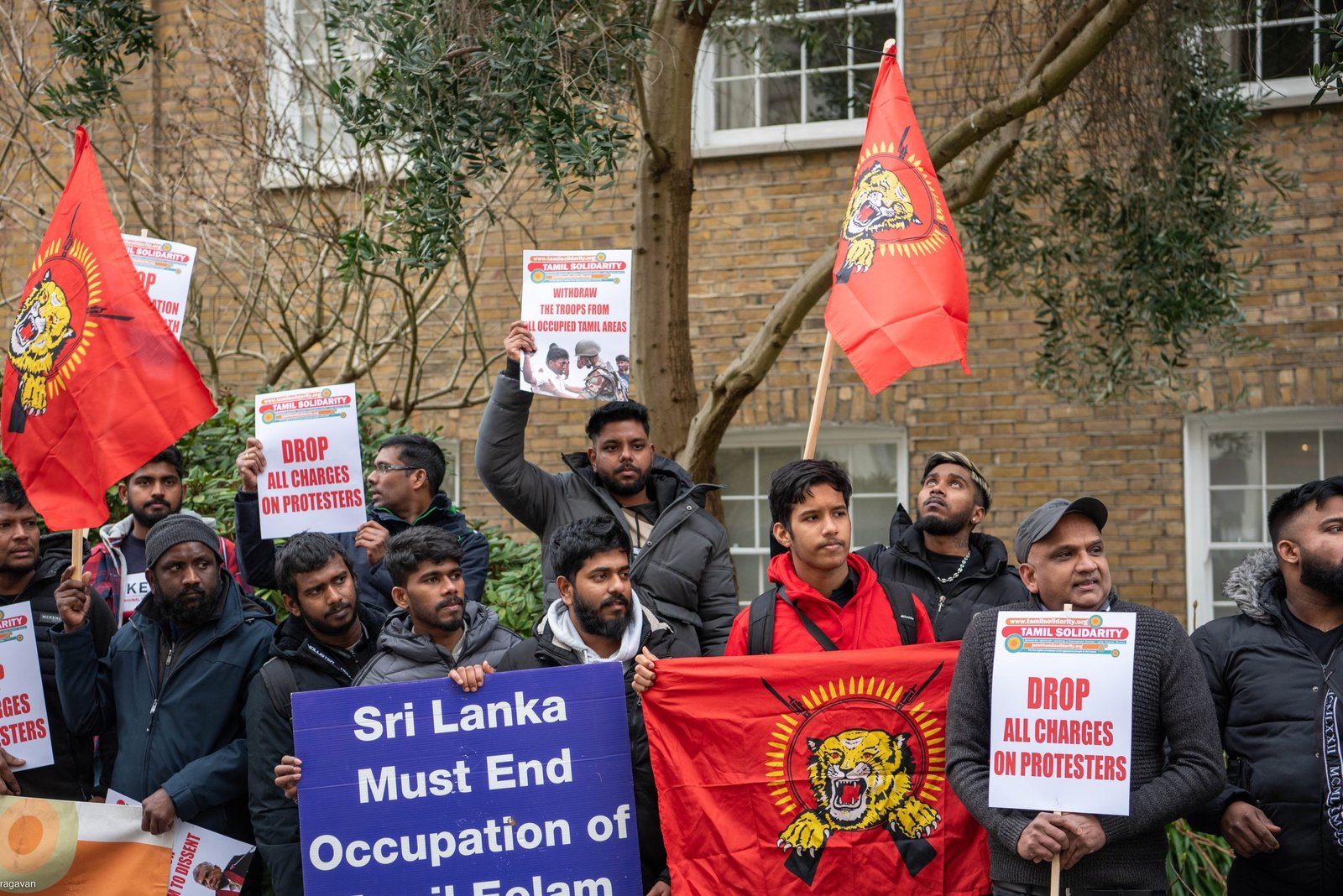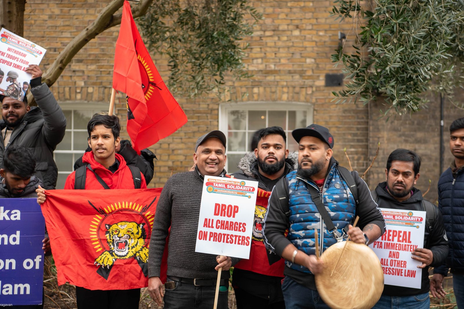 இலங்கையின் 75வது சுதந்திர தினமான பெப்ரவரி 4 அன்று, இலங்கையின் அடக்குமுறை ஆட்சியை எதிர்த்து, லண்டனில் உள்ள இலங்கை உயர்ஸ்தானிகராலயத்தில் தமிழ் சொலிடாரிட்டி போராட்டம் ஒன்றை ஏற்பாடு செய்தது. இந்த குளிர் காலநிலையில் 400க்கும் மேற்பட்டோர் போராட்டத்தில் ஈடுபட்டனர். ஏனைய புலம்பெயர் அமைப்புகளும் வெவ்வேறு நேரங்களில் போராட்டத்தை ஏற்பாடு செய்திருந்தன. 75 ஆண்டுகால அடக்குமுறை என்ற முழக்கத்துடன் இந்தப் போராட்டம் நடத்தப்பட்டது. எங்களின் ஒற்றுமை பொது மக்களுடன்தான் – அரசு மற்றும் உயரடுக்குடன் அல்ல, எமது சுதந்திரத்திற்கான போராட்டம் தொடர்கிறது, நாங்கள் எங்கள் விடுதலையை கோருகிறோம். ‘அரசியல் கைதிகளை விடுதலை செய், போராட்டம் நடத்தும் உரிமை பாதுகாக்கபடவேன்டும், சுயநிர்ணய உரிமை எமது உரிமை , ரணில் ராஜபக்ச வெளியேறு’ என மக்கள் கோஷமிட்டனர். “வெட்க்கம் இலங்கையில் மக்கள் பட்டினியால் சாகின்றார்கள் நீங்கள் ஆடம்பரமாக போலி சுதந்திரத்தை கொன்டாடுகின்றீர்கள்” உயர் ஸ்தானிகராலயத்தை நோக்கி அனைவரும் கோஷமிட்ட போது, எதிர்ப்பை திசைதிருப்பும் வகையில் மிகவும் சத்தமாக சிங்கள மொழியில் பாடல்களை சத்தமாக தூதரகத்தில் இருந்து ஒலிபரப்பட்டது வாசித்தனர். இது போராட்டக்கரர்களை கோபமடைய வைத்தது. தங்கள் கோபத்தை அவர்களிடம் காட்ட விரும்பினார், மேலும் அனைவரும் சேர்ந்து மிகவும் சத்தமாக கோஷமிட்டனர்.