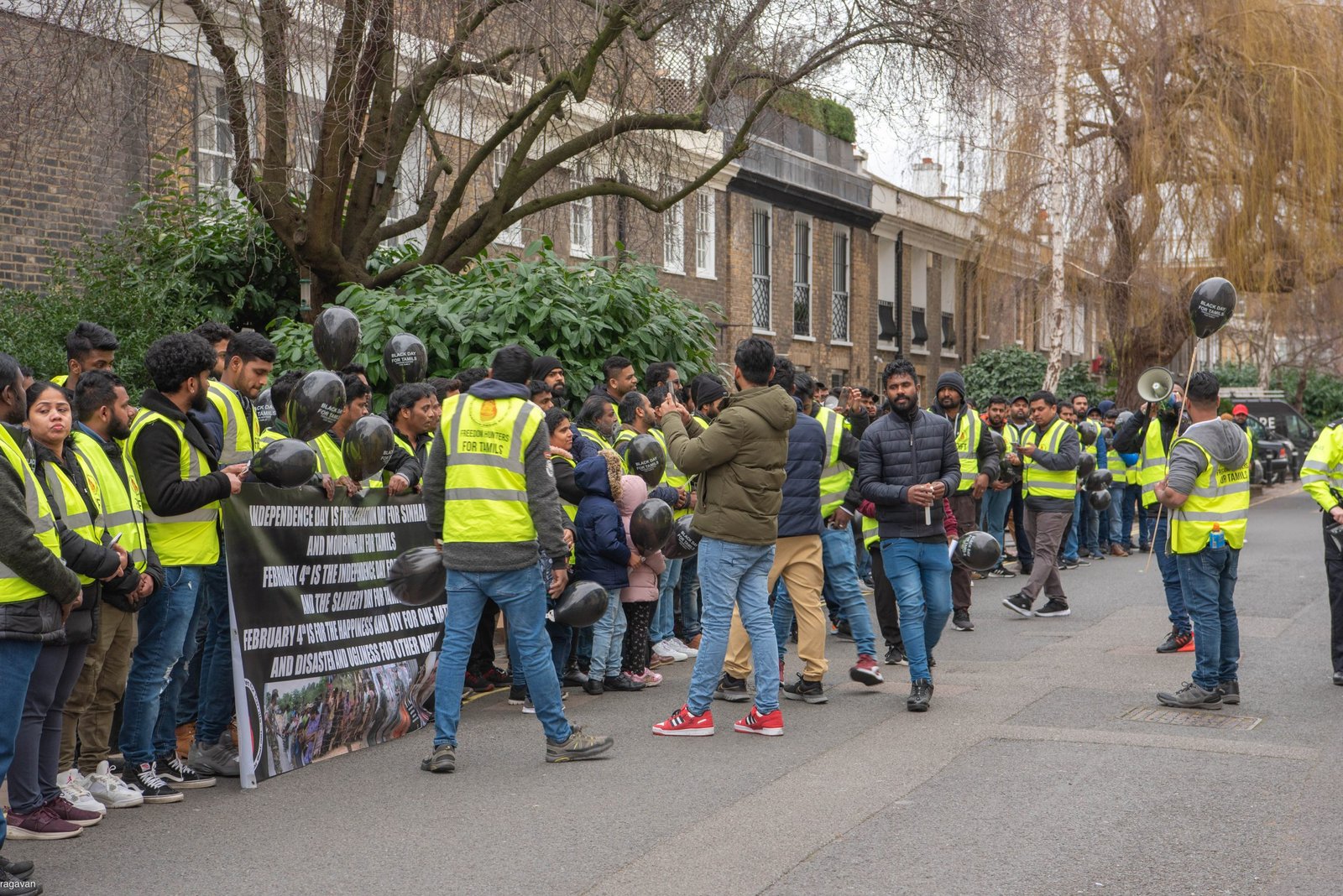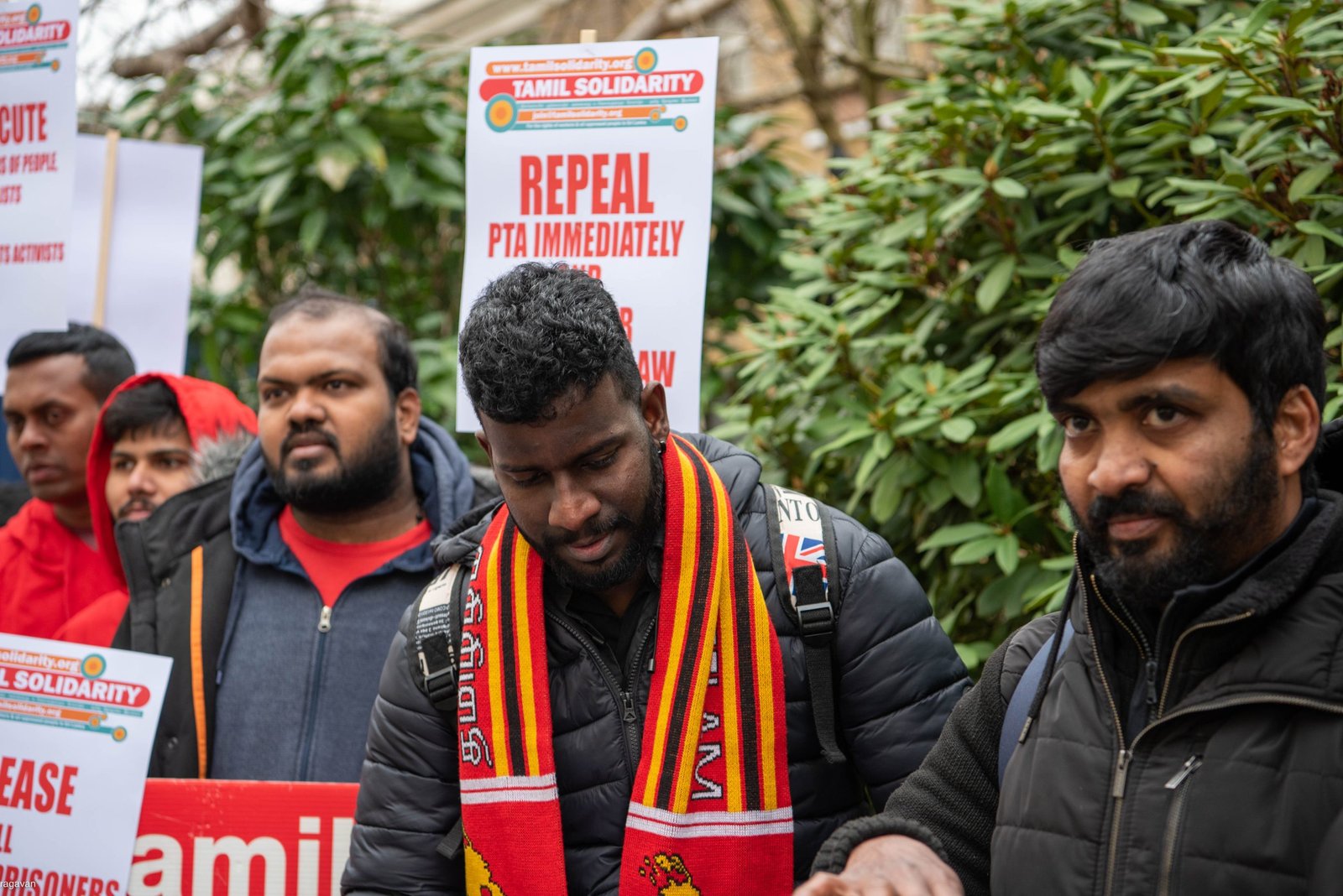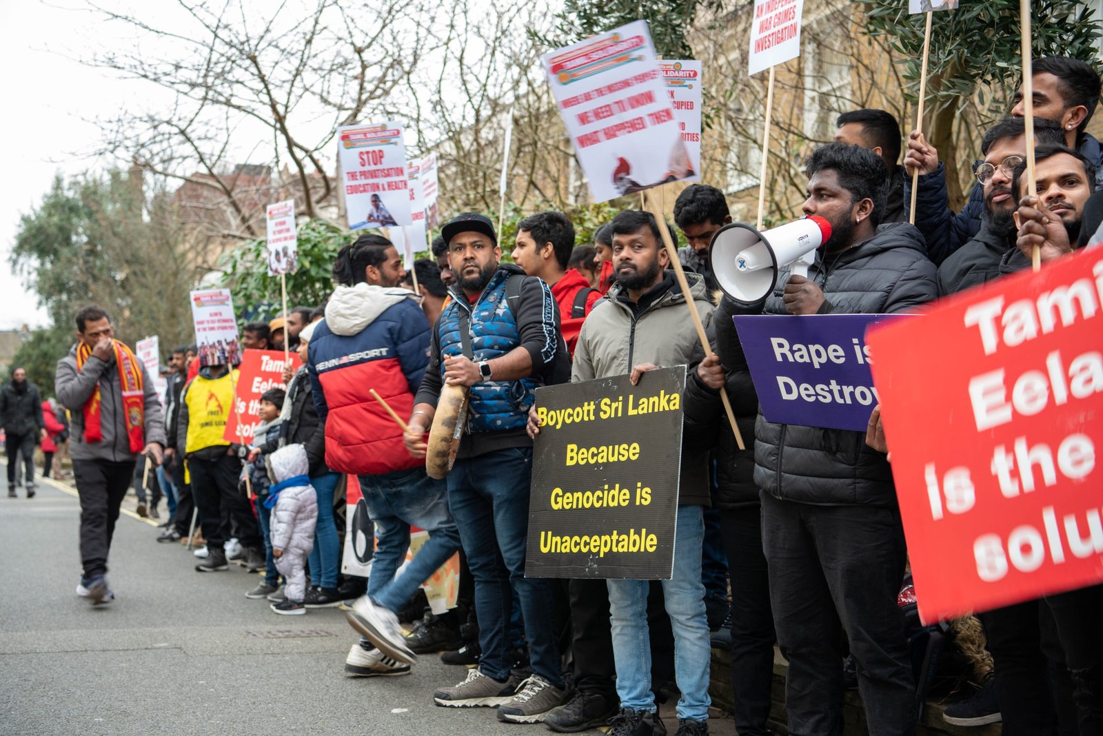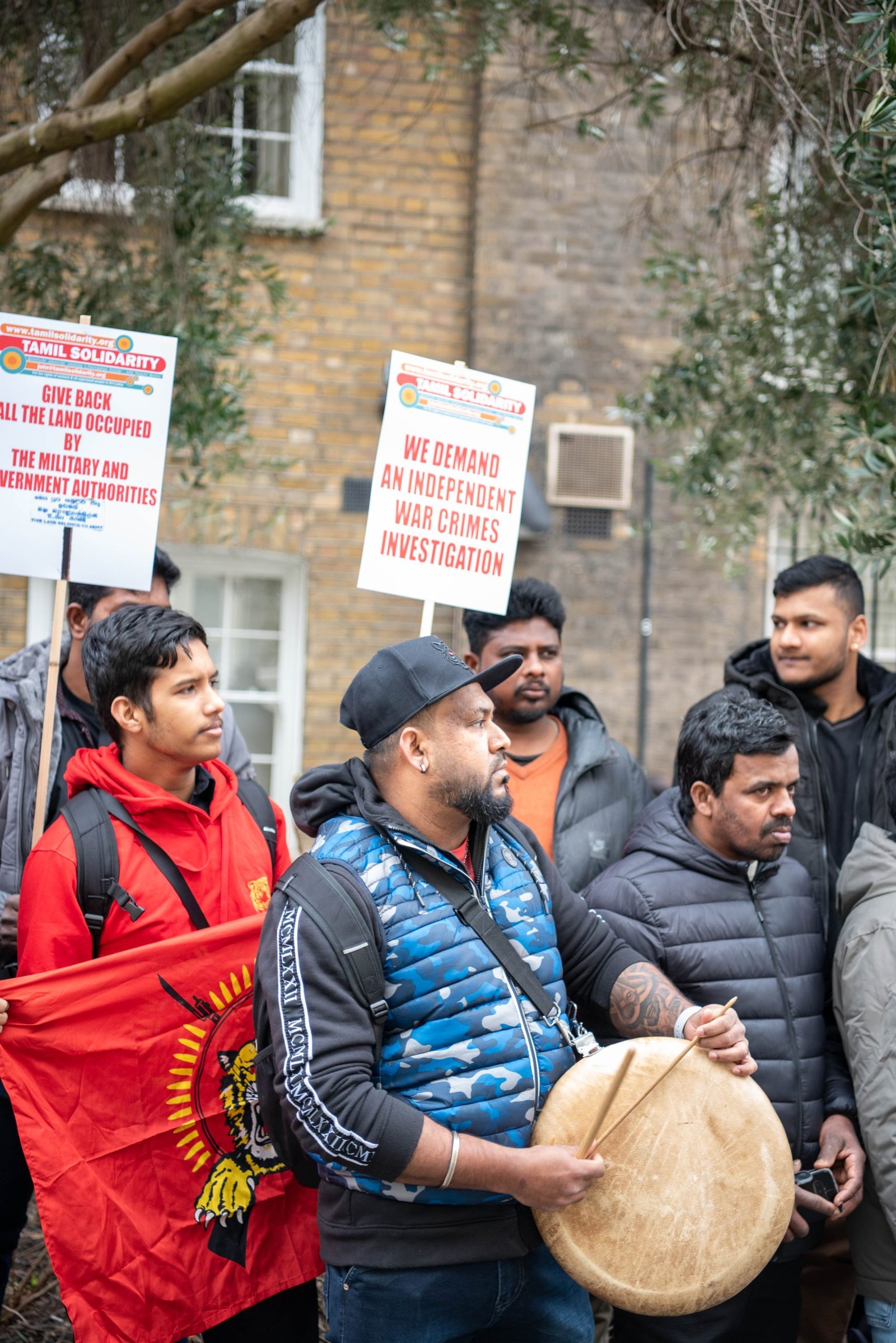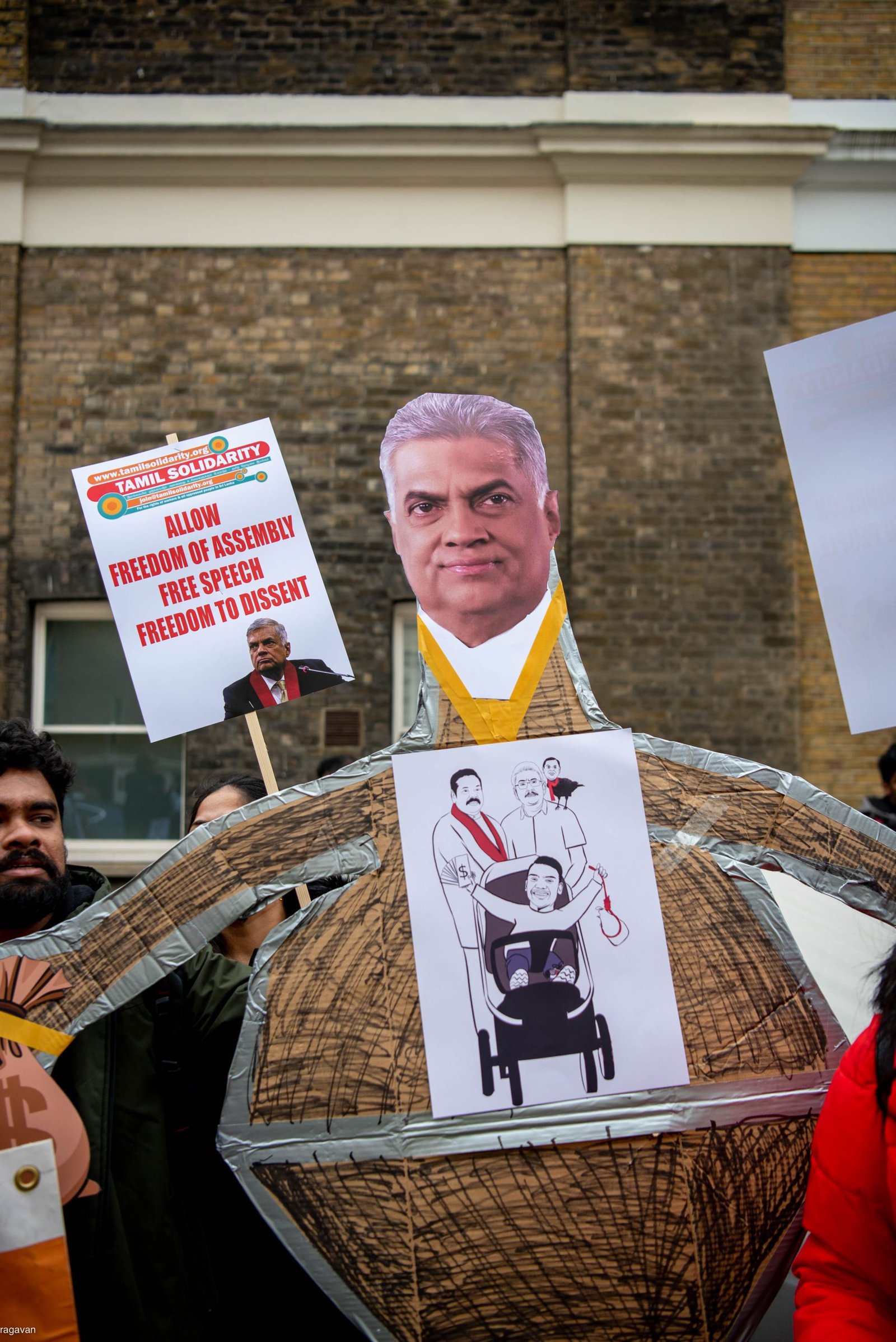 இலங்கையின் 75வது சுதந்திர தினமான பெப்ரவரி 4 அன்று, இலங்கையின் அடக்குமுறை ஆட்சியை எதிர்த்து, லண்டனில் உள்ள இலங்கை உயர்ஸ்தானிகராலயத்தில் தமிழ் சொலிடாரிட்டி போராட்டம் ஒன்றை ஏற்பாடு செய்தது. இந்த குளிர் காலநிலையில் 400க்கும் மேற்பட்டோர் போராட்டத்தில் ஈடுபட்டனர். ஏனைய புலம்பெயர் அமைப்புகளும் வெவ்வேறு நேரங்களில் போராட்டத்தை ஏற்பாடு செய்திருந்தன. 75 ஆண்டுகால அடக்குமுறை என்ற முழக்கத்துடன் இந்தப் போராட்டம் நடத்தப்பட்டது. எங்களின் ஒற்றுமை பொது மக்களுடன்தான் – அரசு மற்றும் உயரடுக்குடன் அல்ல, எமது சுதந்திரத்திற்கான போராட்டம் தொடர்கிறது, நாங்கள் எங்கள் விடுதலையை கோருகிறோம். ‘அரசியல் கைதிகளை விடுதலை செய், போராட்டம் நடத்தும் உரிமை பாதுகாக்கபடவேன்டும், சுயநிர்ணய உரிமை எமது உரிமை , ரணில் ராஜபக்ச வெளியேறு’ என மக்கள் கோஷமிட்டனர். “வெட்க்கம் இலங்கையில் மக்கள் பட்டினியால் சாகின்றார்கள் நீங்கள் ஆடம்பரமாக போலி சுதந்திரத்தை கொன்டாடுகின்றீர்கள்” உயர் ஸ்தானிகராலயத்தை நோக்கி அனைவரும் கோஷமிட்ட போது, எதிர்ப்பை திசைதிருப்பும் வகையில் மிகவும் சத்தமாக சிங்கள மொழியில் பாடல்களை சத்தமாக தூதரகத்தில் இருந்து ஒலிபரப்பட்டது வாசித்தனர். இது போராட்டக்கரர்களை கோபமடைய வைத்தது. தங்கள் கோபத்தை அவர்களிடம் காட்ட விரும்பினார், மேலும் அனைவரும் சேர்ந்து மிகவும் சத்தமாக கோஷமிட்டனர்.